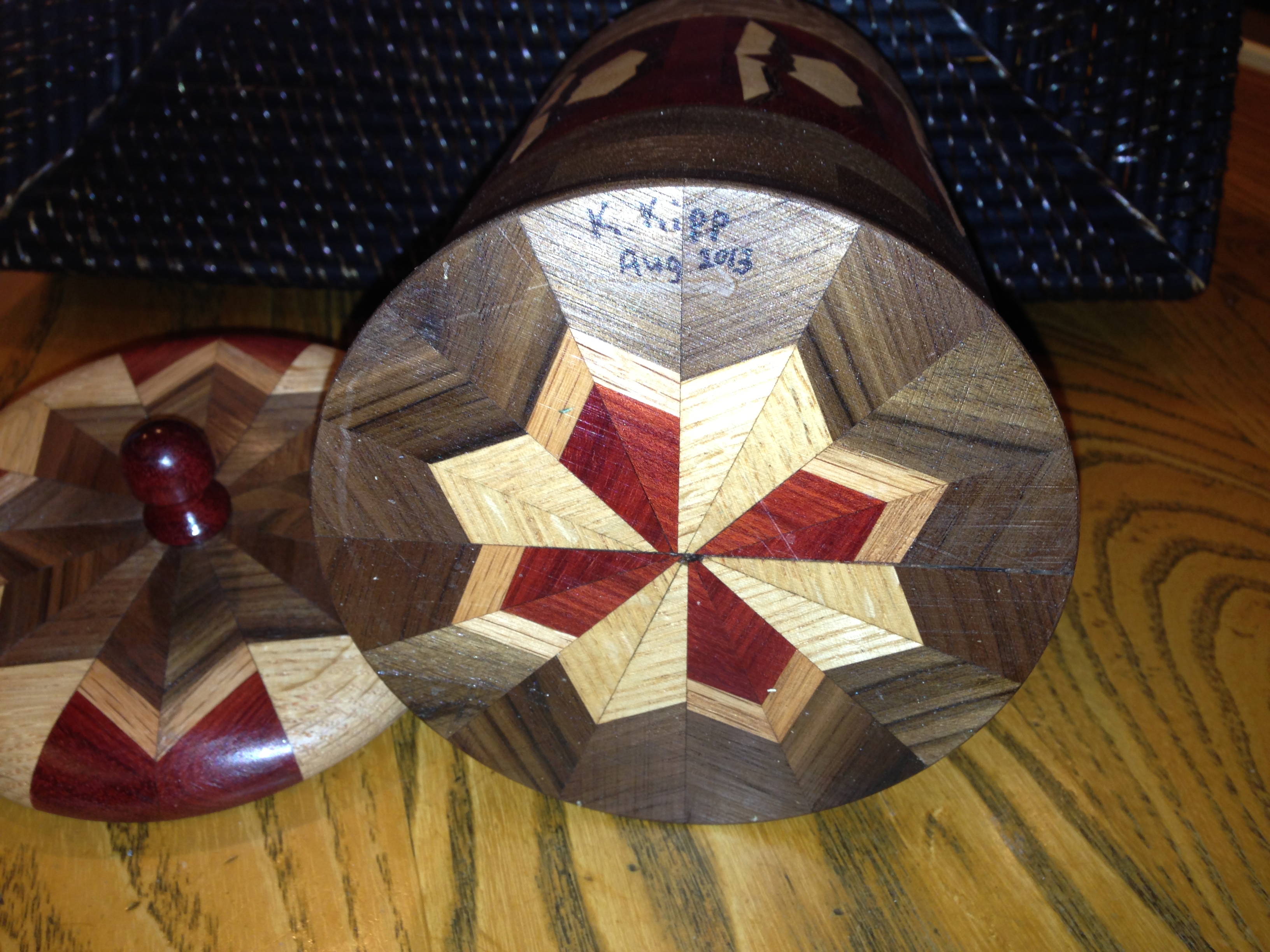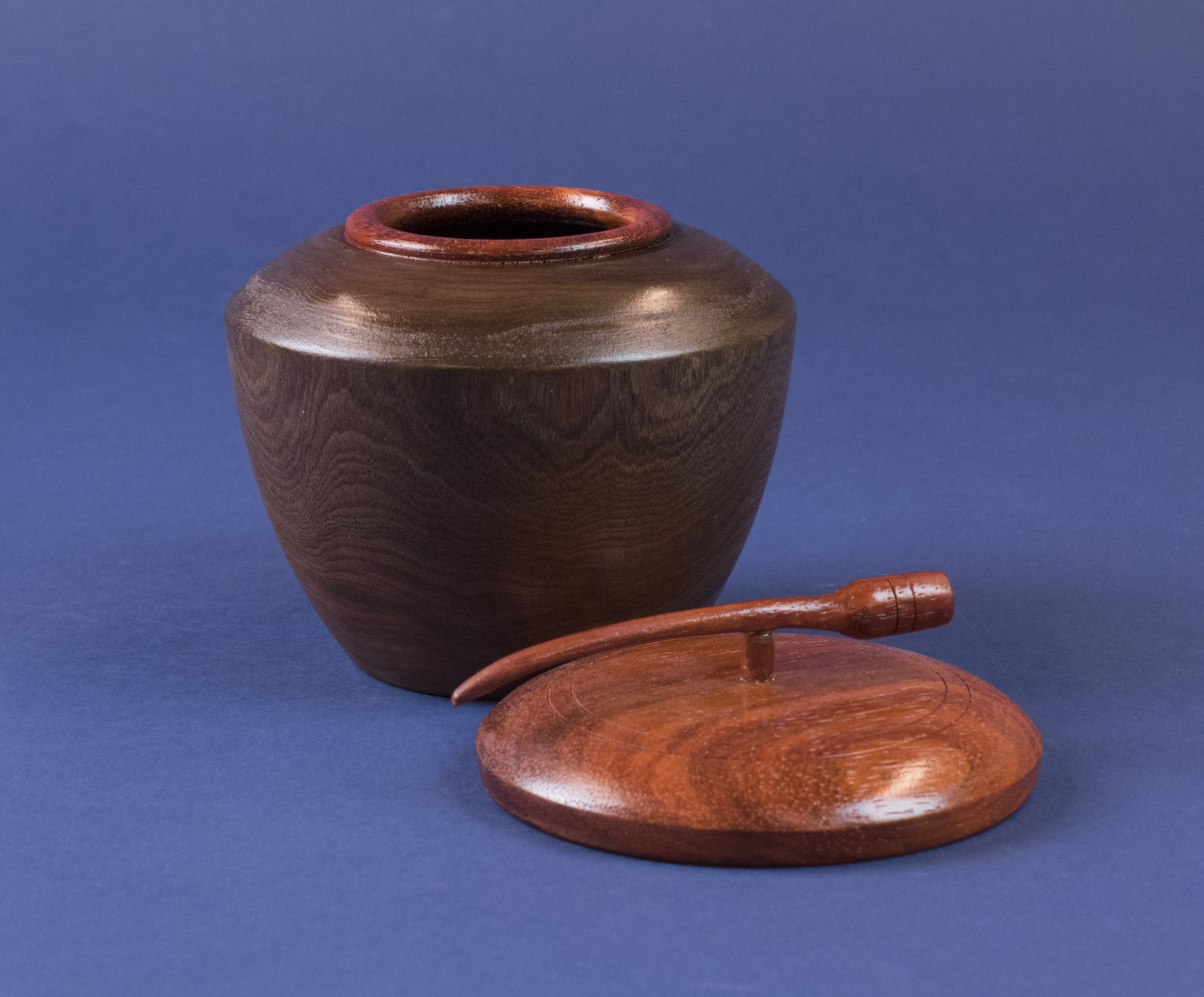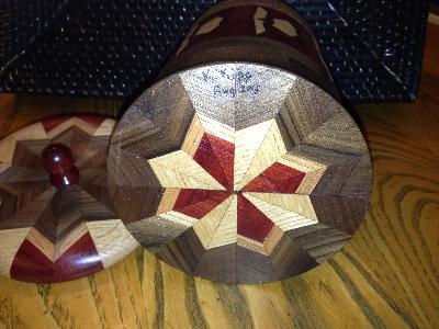 This bowl and cover was made from Bloodwood, Paduk, Maple, and Bubinga. 2010