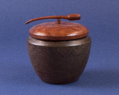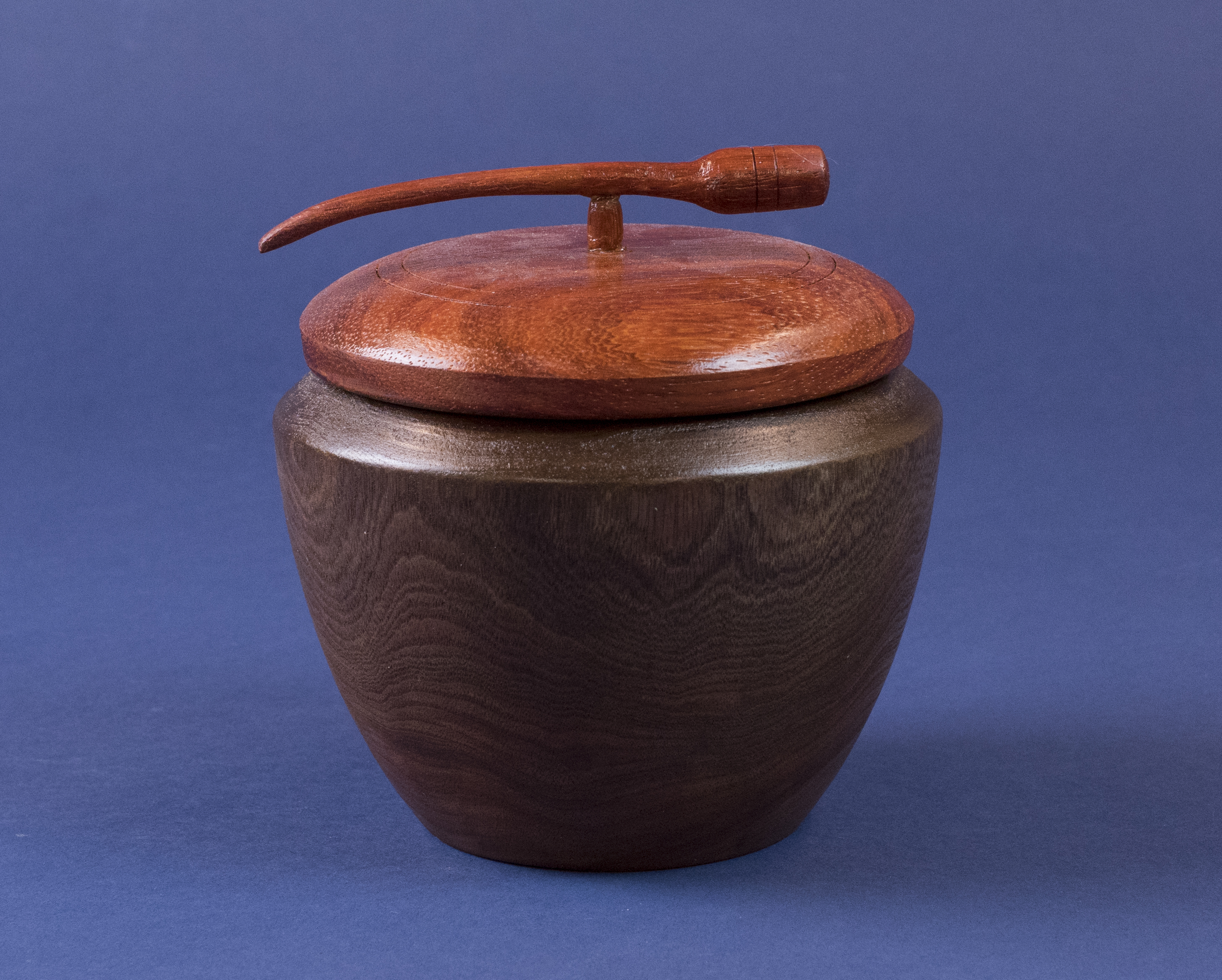 Maple and Walnut jar. Top is sealed to make a covered vessel 2014