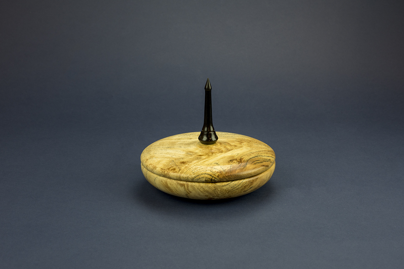 Covered bowl of Spalted Maple with a Gabon Ebony finial