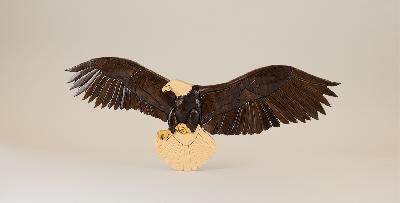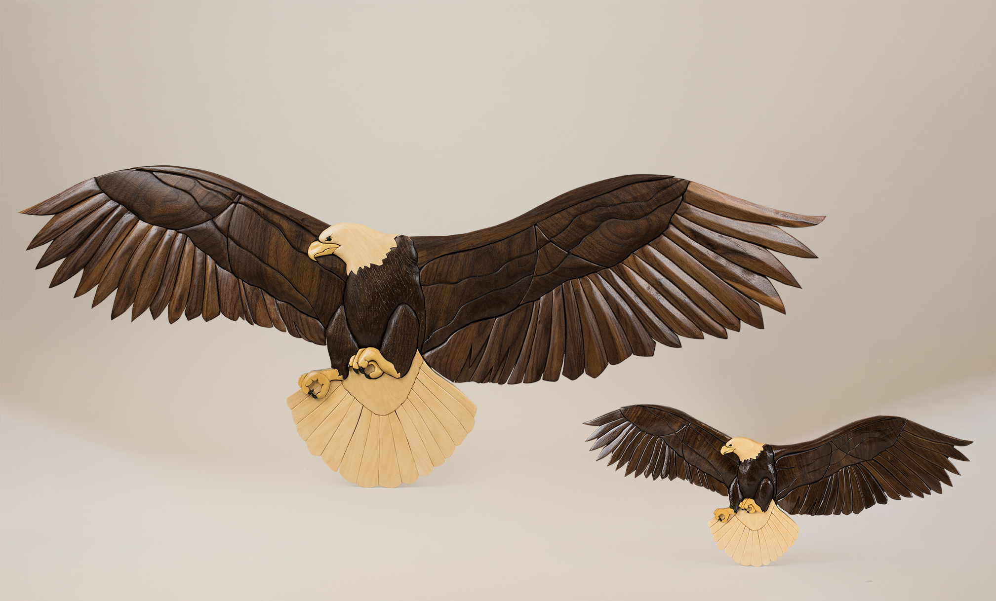 Two eagles both with 92 pieces. Larger has a 50" wingspan. Smaller is 24". Pattern by Judy Gale Roberts.
