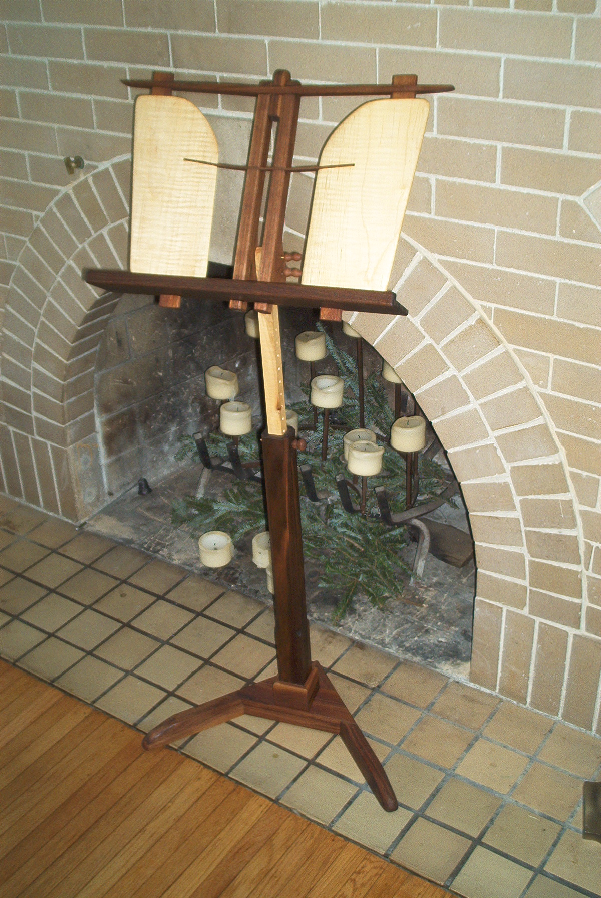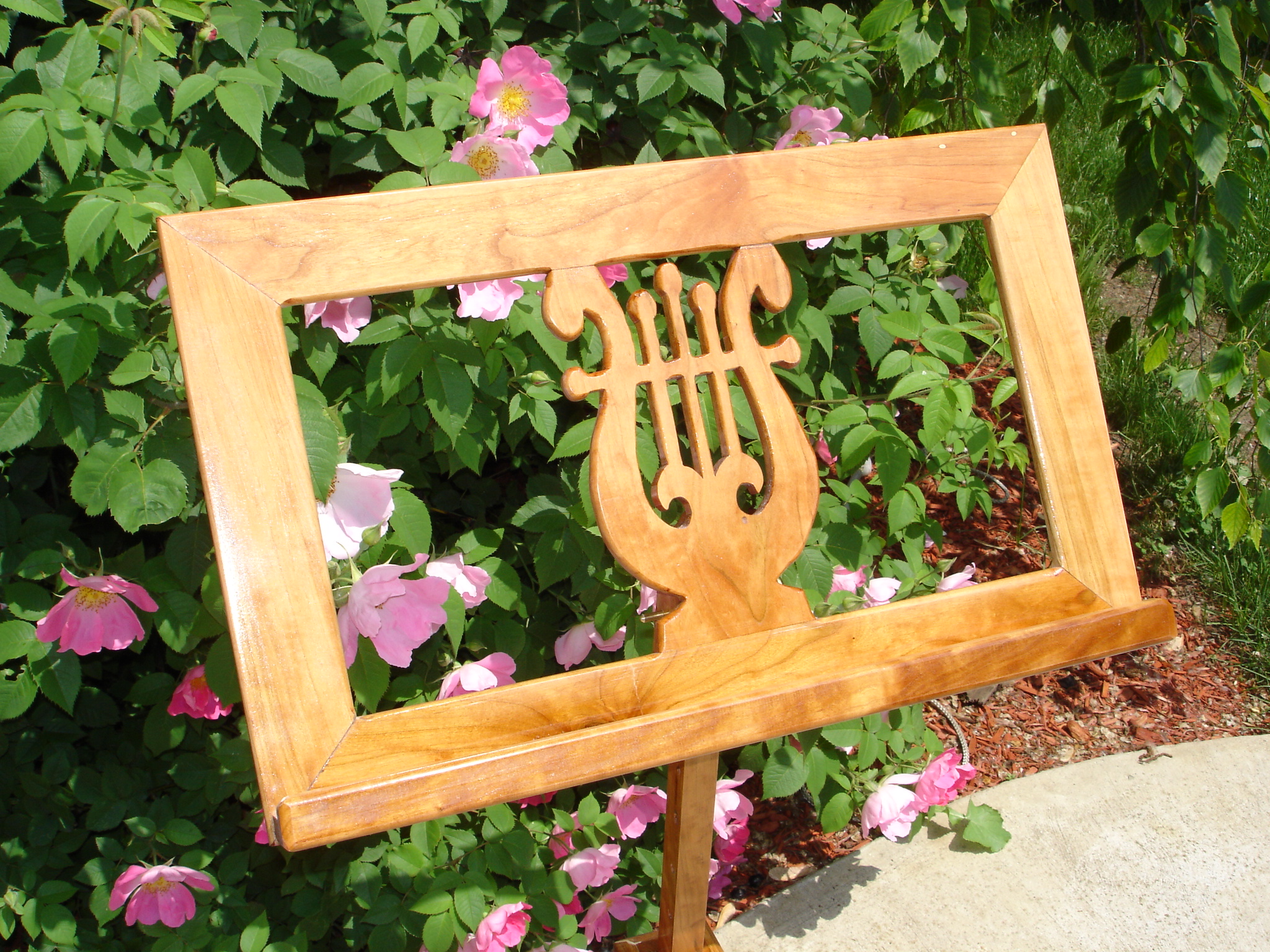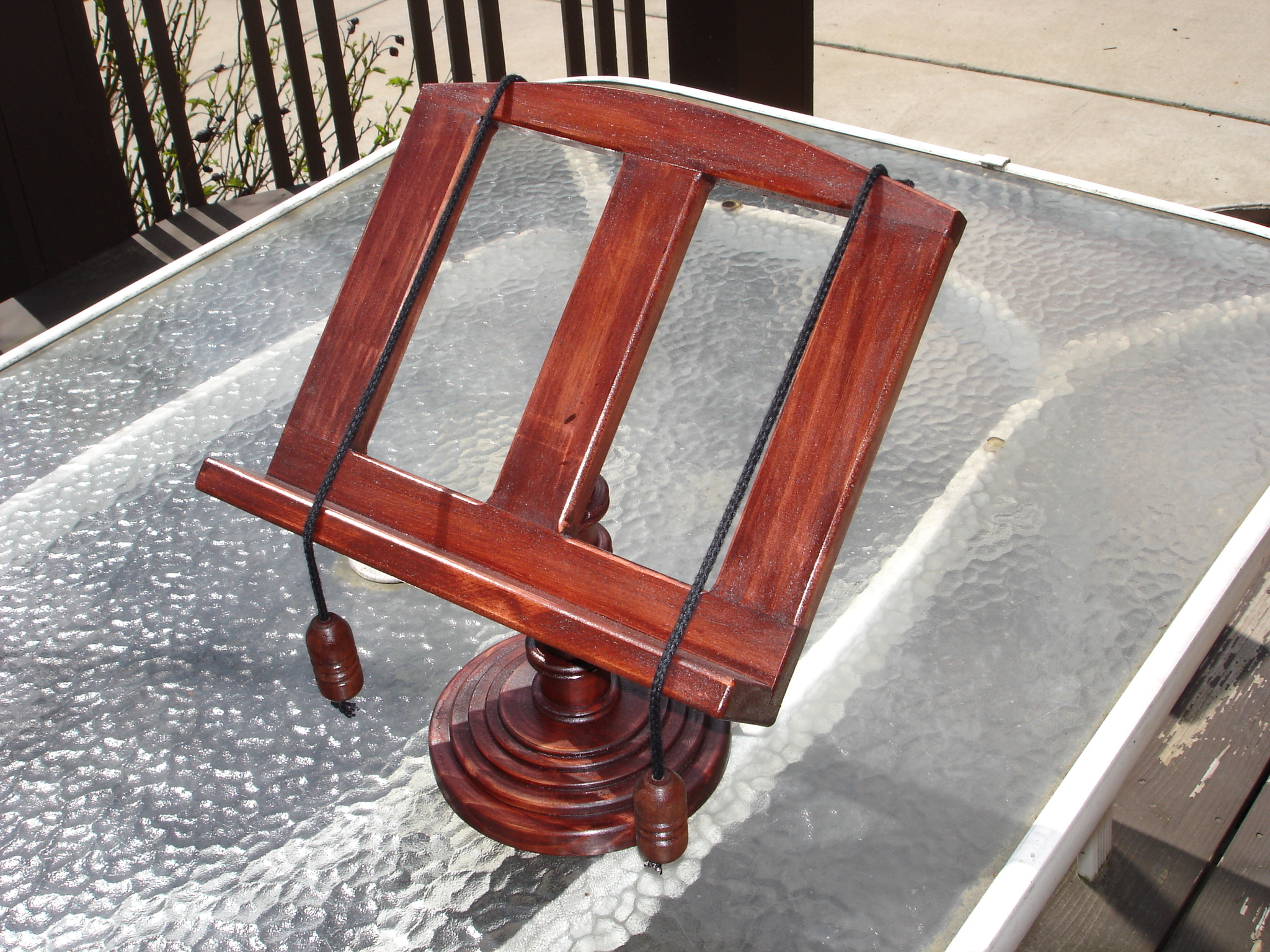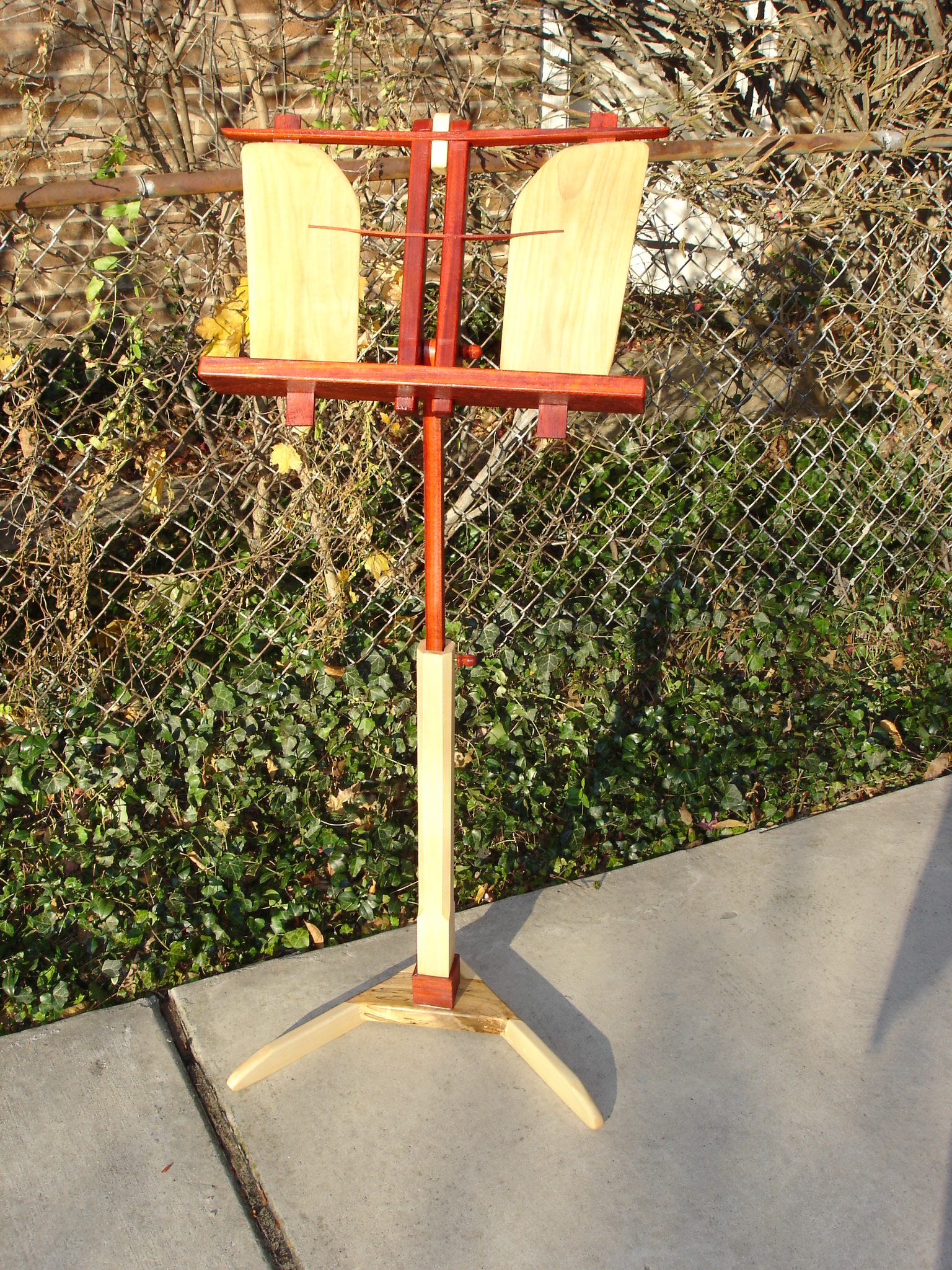 Music stand in Paduk and Maple. 2006 This was a gift to Mary Reed, Evanston High School Choir Director (retired).