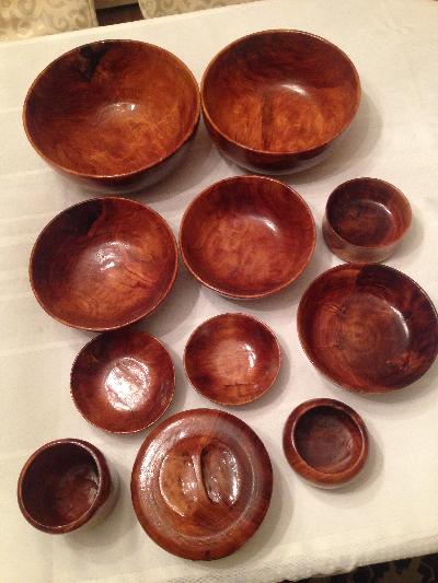 11 crabapple bowls from a single tree trunk (see photo of the log cut up).
