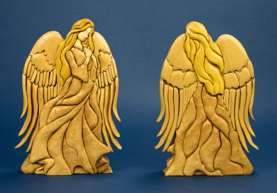 Front and back sides of an intarsia Angel from Yellowheart, Ash, Aspen, and Maple. 2015